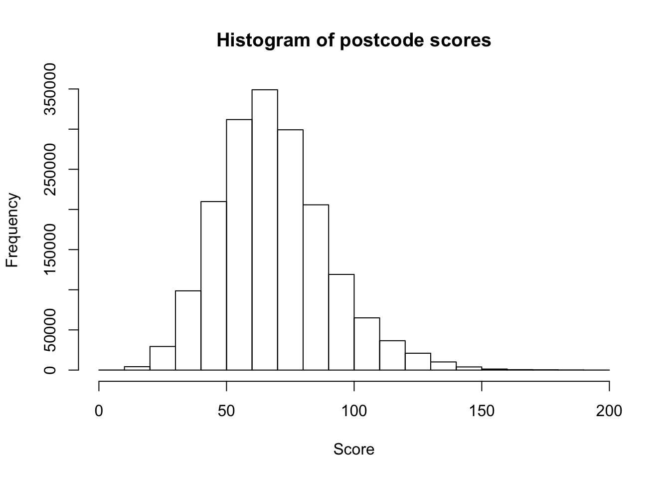 main = "Histogram of postcode scores"